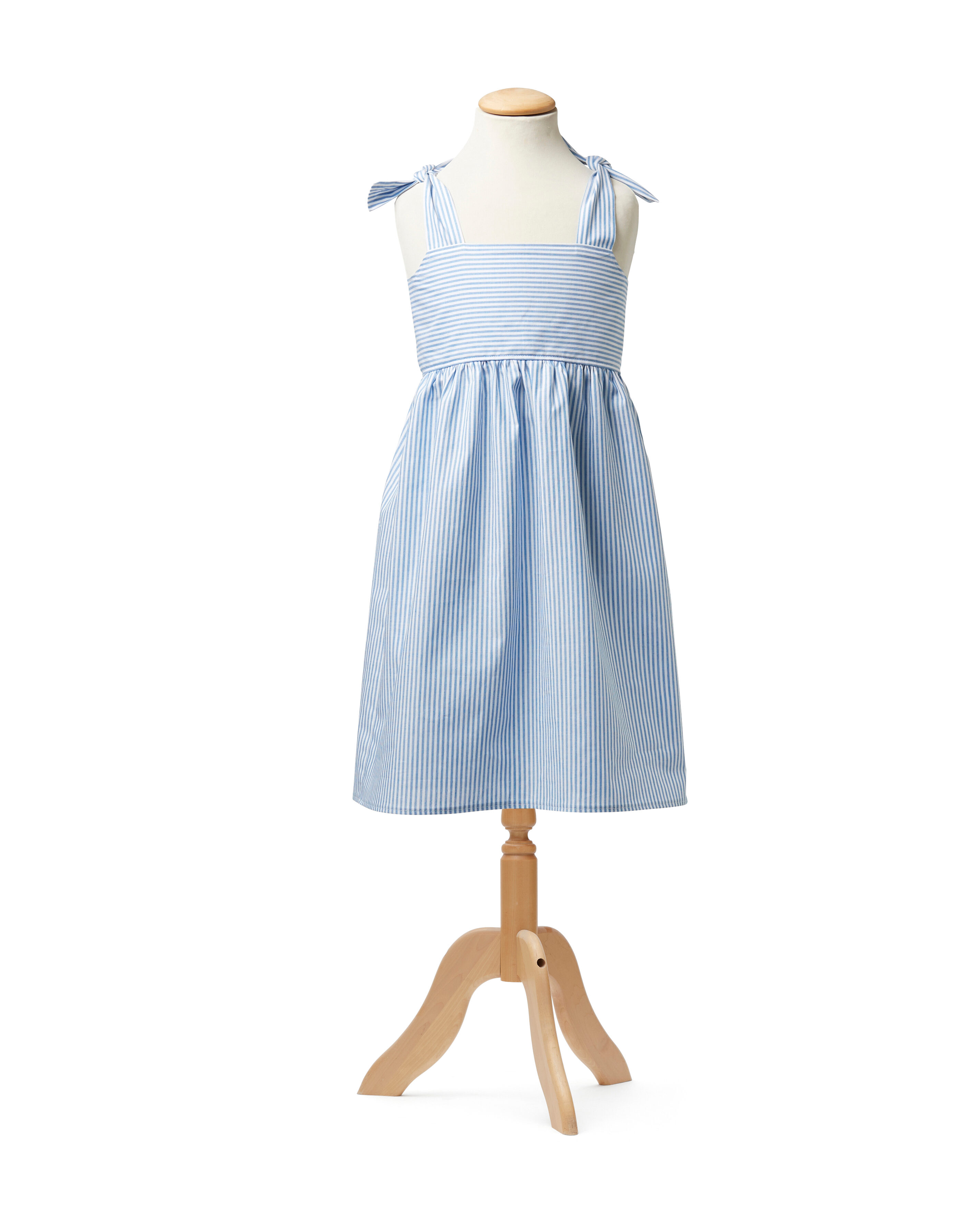 En justerbar förklädesklänning som passar barn mellan 3-6 år. Inspirerad av hur flickor klädde sig i slutet av 1800-talet. Förklädet är av 100% bomull och har justerbara axelband och justerbar i ryggen med knappar. Den passar perfekt när du inte vill smutsa ner dina kläder eller ha lite roligt i köket. Om du vill bära den i Carl Larsson-stil kan du matcha den med en enkel a-linjeformad klänning.