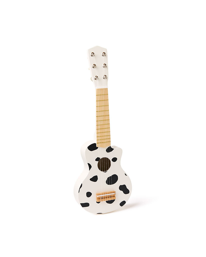 Leksaksgitarr i trä. Barn älskar att spela instrument och träna på att själv leka fram ljud. Gitarren är även en fin inredningsdetalj i barnrummet eller varsomhelst i hemmet för en extra färgkick istället för en prydnadskudde eller tavla. Strängarna går att spänna som på en vanlig gitarr. Den passar perfekt som leksak för det musikälskande barnet eller för att skapa ett musikintresse. Varför inte starta ett litet Kids Rock-band.